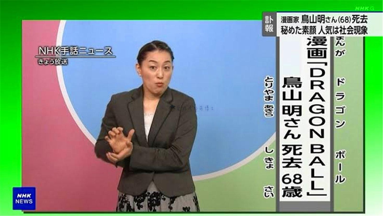 值得一提的是:去年(2024年)《龙珠》作者、漫画大师鸟山明逝世的时候,手语新闻自然也要进行报道,当时手语翻译则比划出了“龟派气功”的手势。龟派气功是《龙珠》中的攻击型气功波技能,由龟仙人(武天老师)创造。作为《龙珠》中出场率最高的技能,存在提升型、组合型等多种衍生形态,算是整部动漫的“形象代言”,深受观众喜爱!